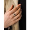 Prsten z bílého zlata 585/1000 s brilianty a safírem. Velikost prstenu 54. Velikost safíru 0,4 x 0,4 cm. Hmotnost 1,56 gr. 0,15 ct 0,37 ct F VS2