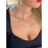 Stříbrný náhrdelník s brilianty v rhodiovaném stříbře 925/1000. Délka 45 cm. Lze zkrátit na délku 40 a 42 cm pomocí oček. Velikost centrální ozdoby 1,8 cm. Váha: 4,75 gr