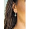 Dámské visací náušnice v kombinaci žlutého a bílého zlata 585/1000. Délka náušnice vč. uzávěru 5 cm. Šířka ozdoby 1,5 cm. Klasický uzávěr. Váha 3,54 gr.