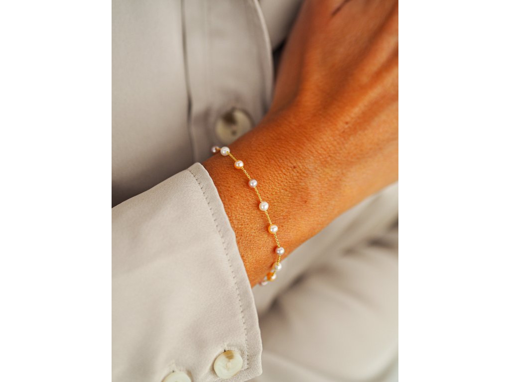 Dámský zlatý náramek ze 14k zlata 585/1000 se sladkovodními perličkami. Délka náramku 19 cm - 17 cm. Odstíny perel béžová, bílá, růžová, oranžová.